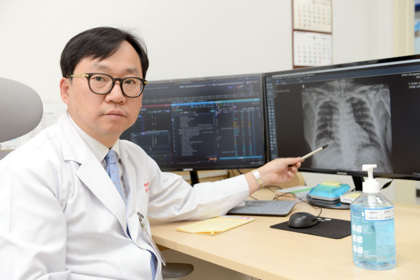 | 류성열 계명대동산병원 감염관리센터장이 코로나19 환자들에게서 나타나는 폐렴 증세에 대해 X선 촬영 사진을 보여주며 설명하고 있다. |